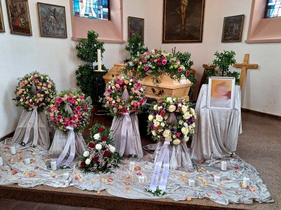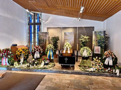 Es kann vorab eine Trauerfeier vor Ort mit Urne erfolgen.
