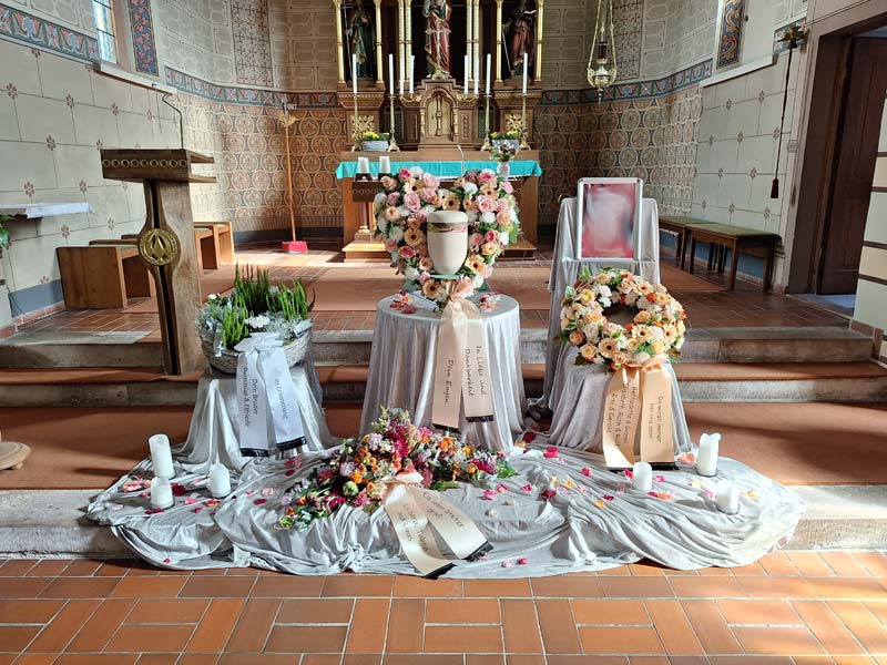 Bei einer Trauerfeier mit Urne erfolgt die Beisetzung der Urne im Anschluss. Dadurch bleibt die Einheit von Trauerfeier und Beisetzung gewahrt.